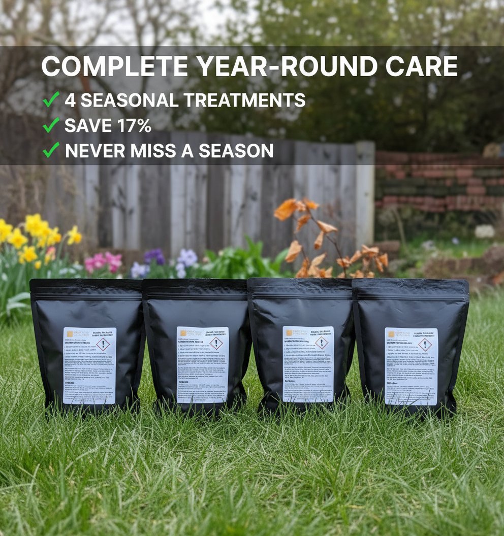 Save up to £120. Buying all four treatments separately costs more. The bundle gives you 17% off—plus you will never miss a season because everything arrives at once.